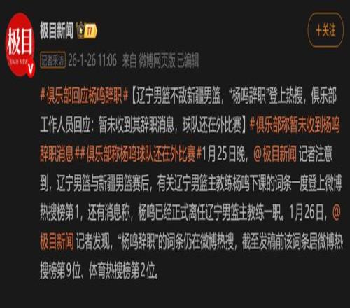 遼寧男籃辟謠!未收到楊鳴辭職申請(qǐng),不能想走就走!