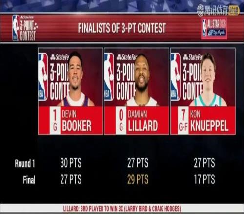 這也是利拉德參加三分大賽的第三個(gè)冠軍