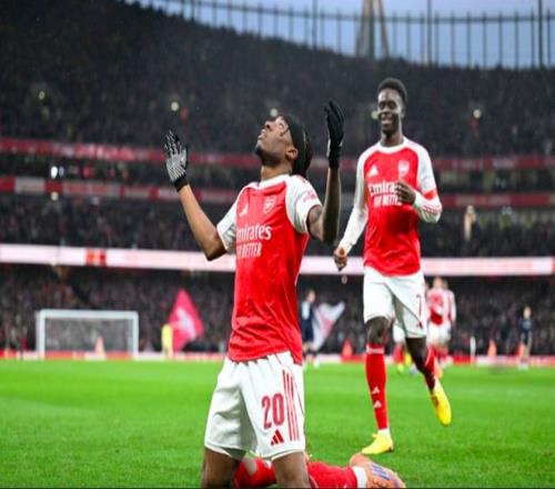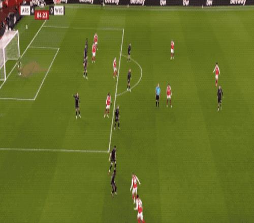 第23分鐘,馬杜埃凱在邊路的過人拍案叫絕,薩卡送出傳中,熱蘇斯包抄,泰勒不慎自擺烏龍。