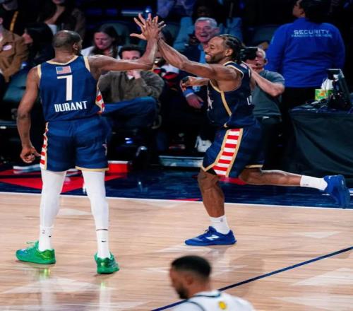 在全明星正賽中,杜蘭特防守文班亞馬時,文班亞馬面對KD干拔后仰中投命中,美媒Clutchpoints寫道:跟文班亞馬比起來KD看起來都小一圈。