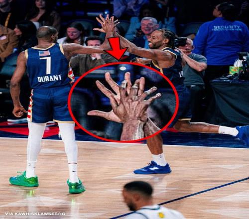 在倫納德的個人IG上有一張圖,杜蘭特與倫納德?lián)粽疲S后這張圖引起了全美媒體的熱議,因為杜蘭特的手掌比倫納德小了一大圈。