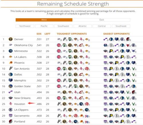 全明星周末后火箭隊(duì)29天里要打完52場(chǎng)比賽,其中有6次背靠背,但火箭余下這29場(chǎng)比賽平均勝率48.6%,面對(duì)季后賽區(qū)內(nèi)的球隊(duì):馬刺1場(chǎng)、掘金1場(chǎng)、尼克斯2場(chǎng)、湖人2場(chǎng)、森林狼2場(chǎng)、猛龍1場(chǎng)。
