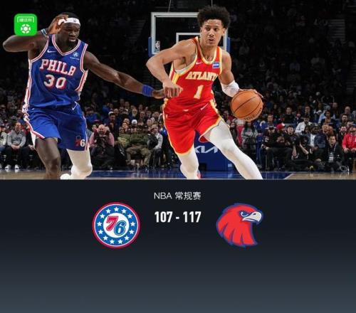 第四節(jié)76人VJ-埃奇庫姆拿下7分,老鷹杰倫-約翰遜拿下9分,最終76人107-117不敵老鷹