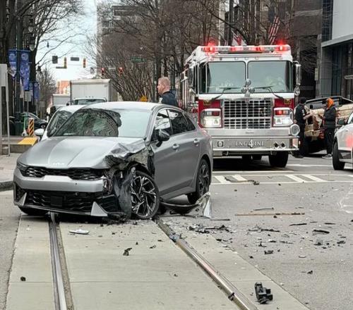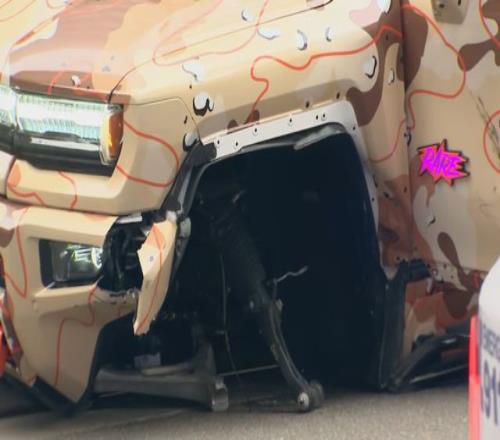 當(dāng)?shù)孛襟w報(bào)道,事故發(fā)生在Trade街Tryon街交叉口,一輛轎車(chē)受損停在路口中央。鮑爾那輛定制版的2022款GMC悍停在路邊,前輪已經(jīng)不見(jiàn)了。 目擊者表示:一輛灰色起亞轎車(chē)沿Trade街向東行駛,鮑爾駕駛悍馬沿Trade街向西行駛,在試圖左轉(zhuǎn)駛?cè)雴蜗蛲ㄐ械腡ryon 街時(shí),兩車(chē)發(fā)生碰撞。