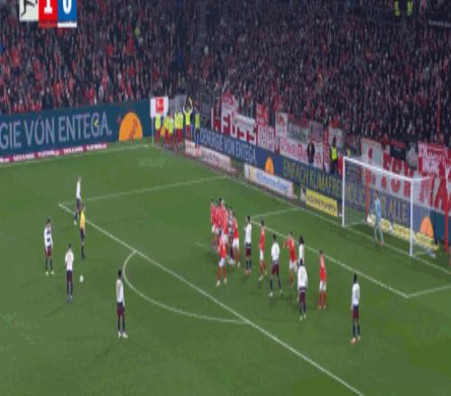 第66分鐘,扳平比分,法比奧-維埃拉任意球擊中人墻變線入網(wǎng),漢堡1-1