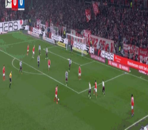 第45分鐘,達(dá)科斯塔傳中,阿米里凌空掃射破門,美因茨1-0