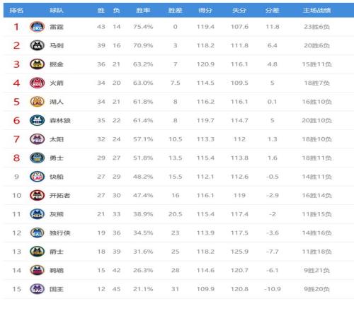 雷霆贏球后43勝14負(fù),排名西部第一。