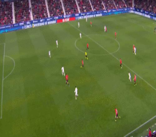 第89分鐘,皇馬后場失誤送大禮,塞瓦略斯回傳時(shí)直接將球“傳到”加西亞腳下,加西亞輕松斷球后傳給莫羅,后者接球往前推進(jìn)到禁區(qū)弧頂前再精妙直塞,加西亞及時(shí)跟進(jìn),禁區(qū)內(nèi)接球冷靜晃開回防球員,超近距離大力兜射,皮球應(yīng)聲入網(wǎng),奧薩蘇納2:1絕殺皇馬??蛨霰漭斍蚝?,皇馬西甲8連勝被終止。