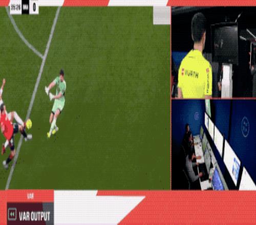 VAR迅速介入,裁判回看后做出改判,取消黃牌,認(rèn)定庫(kù)爾圖瓦犯規(guī),判罰點(diǎn)球。