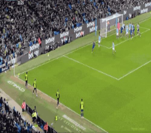 第14分鐘,曼城打出快速反擊,哈蘭德巧妙做球,馬爾穆什送出助攻,奧萊利打破僵局。