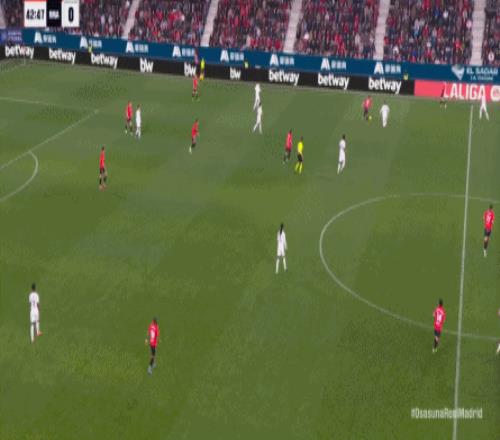 這是足球場上最殘酷的現(xiàn)實,于是在第90分鐘,奧薩蘇納在中線區(qū)域施加壓力,讓皇馬出現(xiàn)了失誤: