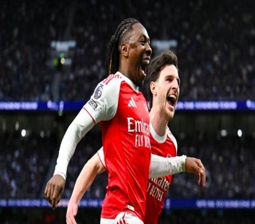 第61分鐘,熱刺防線一片混亂,薩卡的單刀射門被擋出,皮球來到埃澤的腳下,埃澤梅開二度,兩回合對(duì)陣熱刺打進(jìn)5球,效率極高。