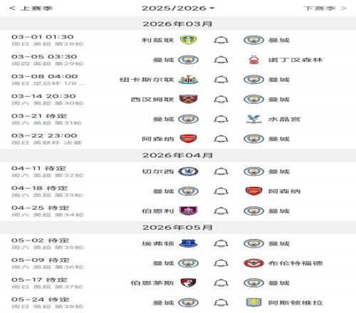 誰(shuí)能奪冠阿森納曼城未來(lái)英超賽程:第33輪迎直接對(duì)話