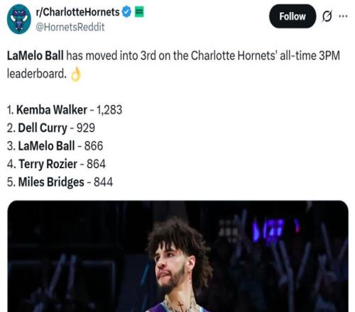這讓三球生涯三分命中數(shù)來(lái)到873記,超越羅齊爾的864記升至黃蜂隊(duì)史第三,僅次于肯巴沃克(1283)和戴爾-庫(kù)里(929)。