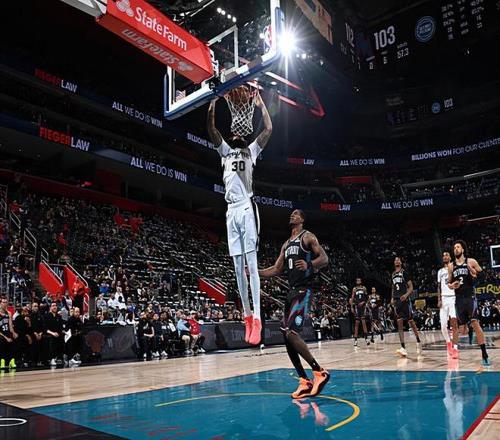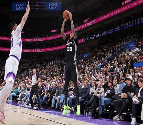 本場比賽中,馬刺的先發(fā)鋒線大將朱利安-尚帕尼(Julian Champagnie)的表現(xiàn)又一次令人刮目相看。尚帕尼全場出場36分26秒,投籃12中6,三分線外8中5,得到了17分6籃板1助攻1搶斷2蓋帽的數(shù)據(jù),還有1次失誤和3次犯規(guī),正負(fù)值為+9。尚帕尼在進(jìn)攻端的效率依然非常穩(wěn)定,他也是將自己在外線投籃方面的表現(xiàn)完全發(fā)揮了出來,他也是抓住了不多的機(jī)會得到了不少分?jǐn)?shù),在進(jìn)攻端為球隊提供了不少的支持。尚帕尼在防守端的表現(xiàn)同樣是可圈可點(diǎn)的,他也是將自己出色的個人防守能力完全發(fā)揮了出來。尚帕尼在本場比賽中可以說是展現(xiàn)出了優(yōu)秀3D類型鋒線球員的水準(zhǔn),在攻防兩端都起到了關(guān)鍵的作用,這也為球隊的勝利做出了巨大的貢獻(xiàn)。