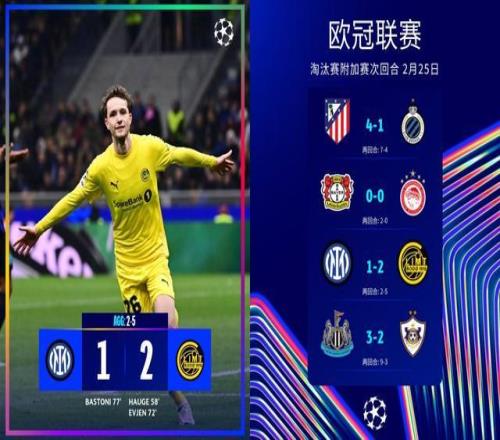 北京時(shí)間2月25日4點(diǎn),25-26賽季歐冠淘汰賽附加賽次回合再次上演冷門。作為本賽季意甲領(lǐng)頭羊與上賽季歐冠亞軍的國際米蘭,坐鎮(zhèn)主場1-2不敵挪超球隊(duì)博德閃耀,兩回合總比分2-5慘遭雙殺出局!