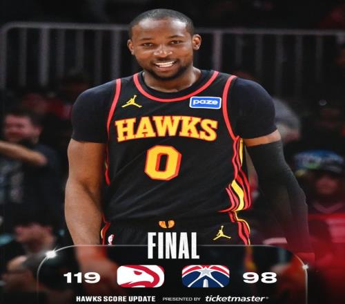 北京時間2月25日,NBA常規(guī)賽,亞特蘭大老鷹119-98大勝華盛頓奇才拿到二連勝。因為奇才是一支擺爛的球隊,首節(jié)老鷹就領(lǐng)先15分,半場拉開到17分,第三節(jié)打完兩隊分差已經(jīng)拉開到38分,末節(jié)老鷹提前換下主力才被奇才追回一些失分。