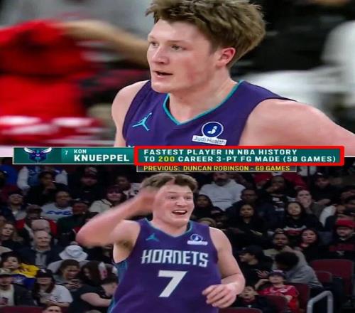 NBA歷史新秀三分紀(jì)錄是由基根穆雷在2022-23賽季創(chuàng)造的206記三分,以克努佩爾現(xiàn)在的速度,不出意外的話,只需要2-3場比賽就能打破,而且賽季結(jié)束時(shí),克努佩爾有望大幅提高這一數(shù)字(最多可能會達(dá)到280記)。