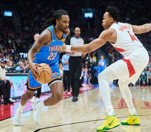 雷霆客場挑戰(zhàn)猛龍,雷霆少了亞歷山大、杰倫、米切爾,戰(zhàn)力折損巨大,猛龍少了珀爾特爾,就紙面實力而言猛龍占優(yōu),首節(jié)比賽猛龍占據(jù)上風(fēng),一度領(lǐng)先10分,首節(jié)戰(zhàn)罷領(lǐng)先7分,第二節(jié)雷霆單節(jié)贏了16分,半場戰(zhàn)罷雷霆領(lǐng)先9分,第三節(jié)雷霆擴(kuò)大優(yōu)勢,一度領(lǐng)先25分,三節(jié)戰(zhàn)罷領(lǐng)先18分,第四節(jié)猛龍強(qiáng)勢追分,一度追平分差,隨后雷霆打出一波9-0鎖定勝局,最終雷霆116-107擊敗猛龍??ㄉ?6中11(三分5中4)得到27分8板6助、以賽亞喬14中7(三分11中6)得到22分2板3助2斷、卡魯索10中6得到16分2板4助2斷。猛龍方面巴雷特15中8(三分6中4)得到21分8板4助、巴恩斯17中7得到15分3板7助3斷4帽、鶯歌14中6得到15分6板6助。