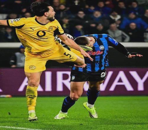 第75分鐘,多特蒙德用一次反擊撕開了亞特蘭大的防線:阿德耶米接布蘭特直塞,在禁區(qū)右側(cè)晃開防守后兜射遠(yuǎn)角,皮球劃出一道弧線鉆入網(wǎng)窩,3-1!總比分3-3,多特蒙德憑借客場進(jìn)球優(yōu)勢重新占據(jù)主動。此時的亞特蘭大球員開始急躁,后場傳球失誤增多,而多特蒙德則越踢越自信,似乎勝利的天平正在向他們傾斜。