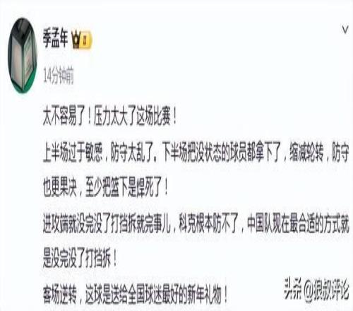 體壇周報記者季孟年發(fā)文點評: