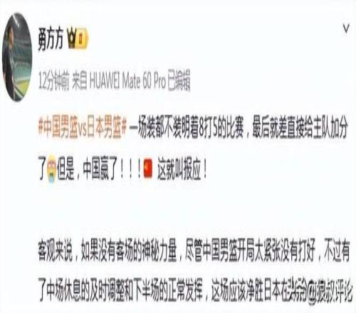 客觀來說,如果沒有客場的神秘力量,盡管中國男籃開局太緊張沒有打好,不過有了中場休息的及時調整和下半場的正常發(fā)揮,這場應該凈勝日本在20分左右。