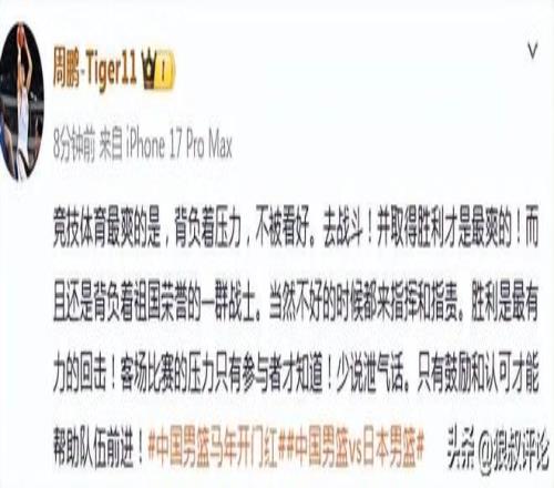 深圳男籃球員周鵬發(fā)文點評: