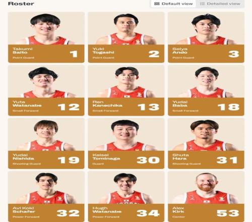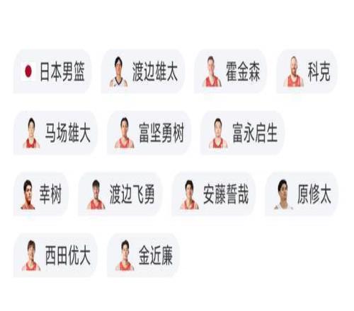 日本男籃12人名單