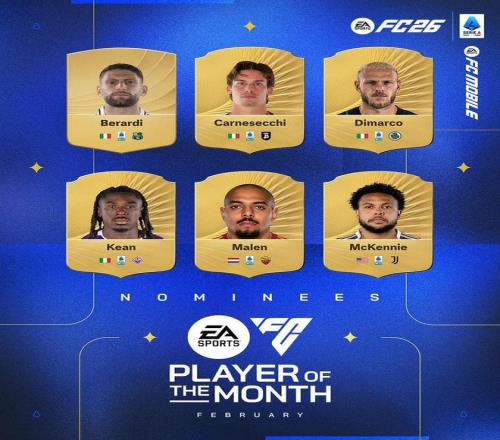 北京時(shí)間2月26日,意甲官方公布了2月聯(lián)賽最佳球員的6位候選者,國際米蘭的左后衛(wèi)迪馬爾科、羅馬前鋒馬倫以及尤文圖斯中場(chǎng)麥肯尼在列。