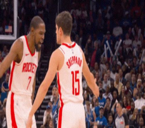 杜蘭特在終場(chǎng)哨響后第一時(shí)間找到謝潑德