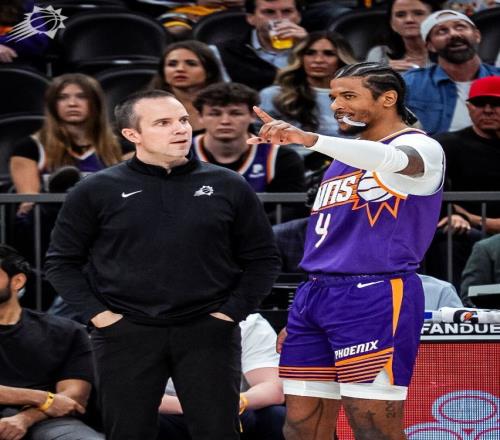 休賽期和杜蘭特、比爾分道揚鑣的太陽,確立了布克的絕對核心地位,在后者的率領(lǐng)下,不被看好的太陽打出了遠超預(yù)期的表現(xiàn),盡管受到多名主力受傷無法出戰(zhàn)的影響,太陽連續(xù)輸給了波特蘭開拓者和波士頓凱爾特人,但是他們?nèi)匀辉诜e分榜上排名第七,只落后身前的湖人2個勝場差。