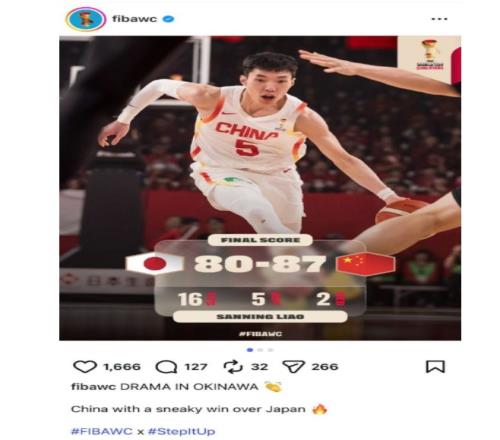 除此之外,國際籃聯(lián)(FIBA)也做出了巨大爭議的行為,就是在官方報道比賽時,出現(xiàn)離譜的用詞不當,配文寫道:“中國男籃從日本偷走一場勝利(China with a sneaky win over Japan )”,很快評論區(qū)被圍攻。