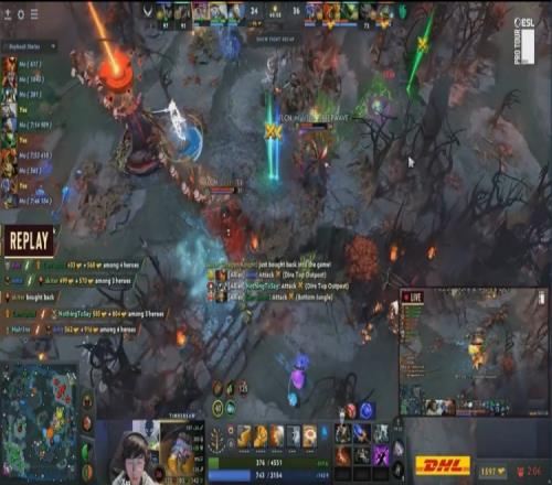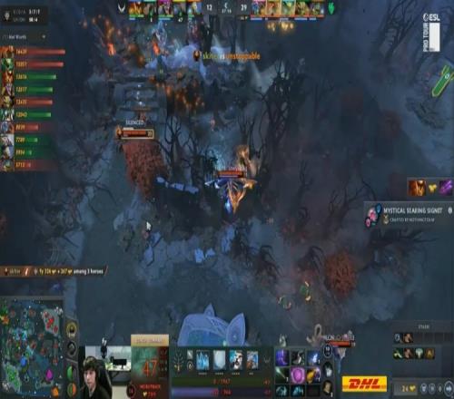 【34:05】野區(qū)團戰(zhàn),森哥海象神拳打飛skiter,NTS牛頭開bkb進場控住skiter,skiter沒開出bkb被X哥聯(lián)手隊友秒掉,XG打出0換2。