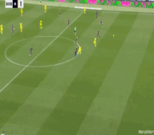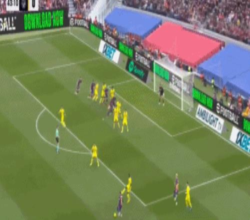 第49分鐘,尼古拉-佩佩角球傳中,巴薩后防線一片混亂,帕普-蓋伊門前抽射建功,比利亞雷亞爾扳回一城,1-2!