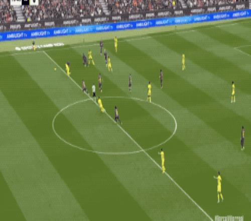 接下來的15分鐘,場面相對平靜,兩隊的防守都密不透風,直到比利亞雷亞爾出現(xiàn)失誤。