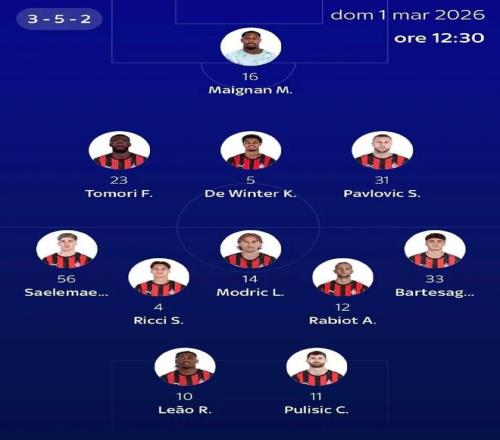 北京時間3月1日19點30分,意甲第27輪,米蘭將在客場對陣克雷莫內塞。意大利天空體育給出了本場比賽米蘭的預測首發(fā)陣容。