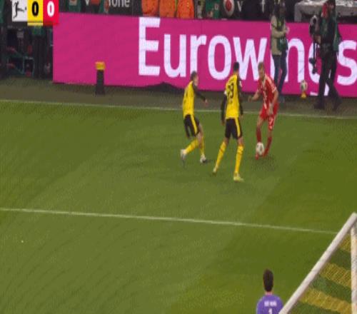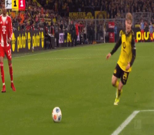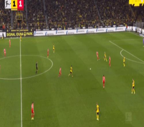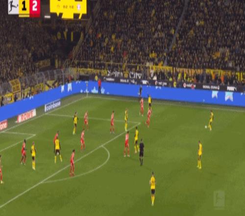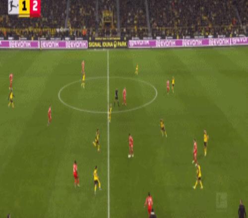 第48分鐘,多特前場配合,阿德耶米禁區(qū)內(nèi)踢疵