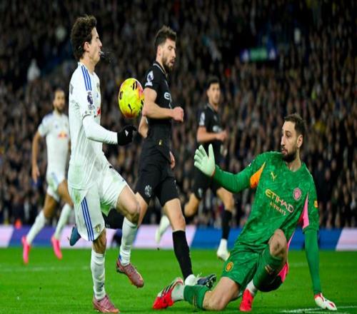 第38分鐘,利茲聯(lián)的防守反擊險(xiǎn)些轉(zhuǎn)化為進(jìn)球,阿隆森的單刀機(jī)會變成強(qiáng)弩之末,多納魯馬將球擋出。