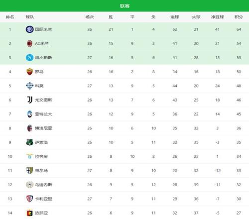 隨著黑馬31逆轉(zhuǎn)+衛(wèi)冕冠軍21!意甲最新積分榜:25名差6分