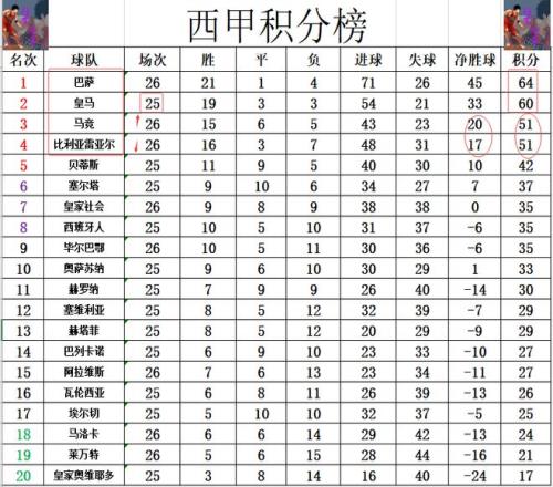 西甲最新積分戰(zhàn)報(bào)巴薩大勝多皇馬4分繼續(xù)領(lǐng)跑馬競(jìng)小勝?zèng)_進(jìn)前3