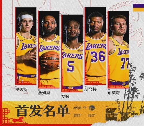 湖人這邊,八村塁因生病缺陣,其余球員可以出戰(zhàn)。本場比賽是東契奇27歲生日之夜,賽前湖人全隊為他慶生。湖人首發(fā):東契奇、里夫斯、斯瑪特、詹姆斯、艾頓。勇士首發(fā):波杰姆斯基、梅爾頓、穆迪、桑托斯、追夢格林。