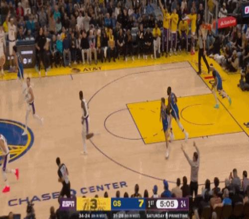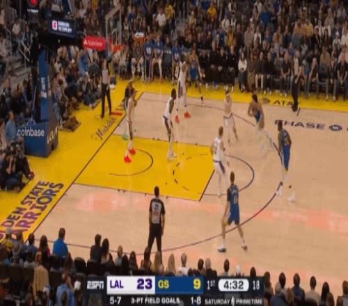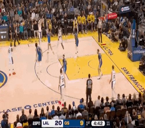 湖人直接把勇士射蒙了,第一節(jié)結束,湖人33-20勇士