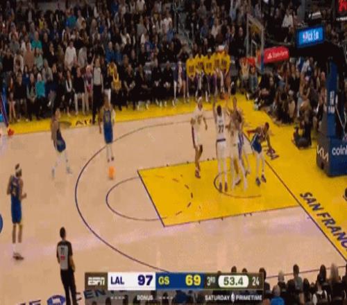 艾奶奶鎮(zhèn)守的湖人內(nèi)線形同虛設,直接被勇士擊穿了