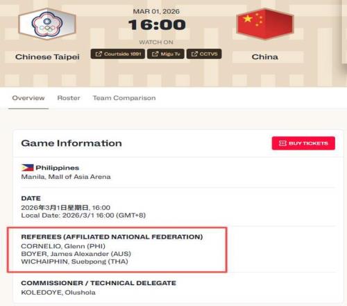 當(dāng)爭(zhēng)議裁判瑞安·瓊斯、普里達(dá)孟米、梁俊容被全網(wǎng)拉黑,國(guó)際籃聯(lián)終于在3月1日官宣:中國(guó)男籃對(duì)陣中國(guó)臺(tái)北的裁判組,換人了。