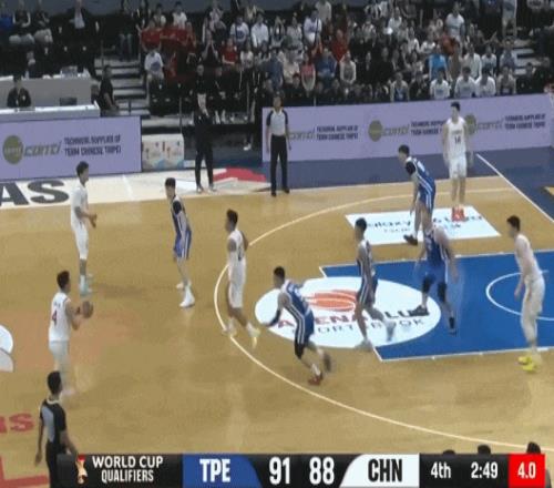 在對陣中國臺北隊的比賽中,趙繼偉壓哨命中超級遠三分。圖源:央視新聞客戶端
