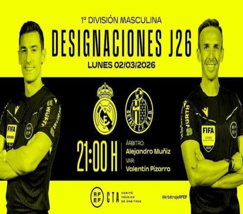 西班牙足協(xié)官方公布了周一西甲比賽裁判安排,亞歷杭德羅-穆尼斯將執(zhí)法皇馬vs赫塔費。