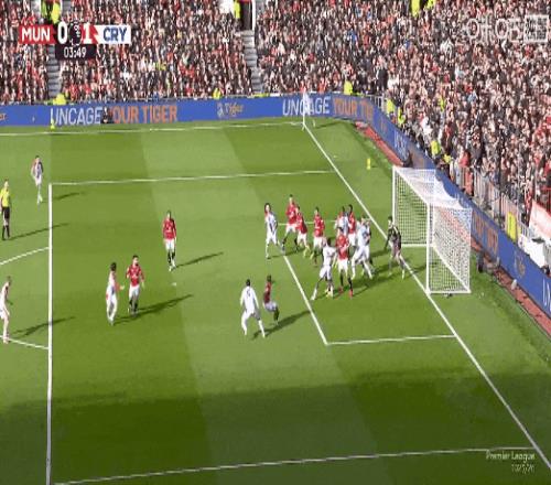 開場閃擊!比賽第3分鐘,拉克魯瓦稍遠(yuǎn)距離頭球頂進(jìn)死角,水晶宮1比0曼聯(lián)!