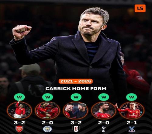 這場比賽逆轉取勝,也使得卡里克成為55年來首位執(zhí)教曼聯后前5個主場全勝的主教練。作為曼聯主教練,卡里克在前9場英超比賽中為球隊贏得了23分,他兩次執(zhí)教紅魔至今保持不敗,戰(zhàn)績?yōu)?勝2平。