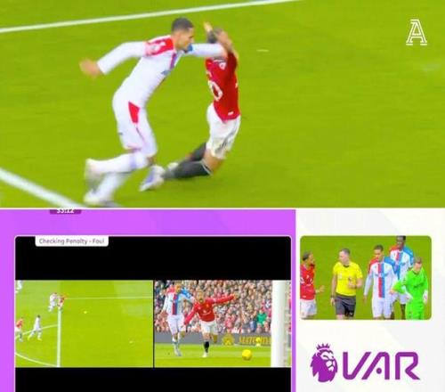 當(dāng)時(shí)庫(kù)尼亞接到布魯諾·費(fèi)爾南德斯的妙傳,即將形成單刀面對(duì)門(mén)將,上半場(chǎng)進(jìn)球的水晶宮后衛(wèi)馬克桑斯·拉克魯瓦對(duì)他進(jìn)行了拉拽。庫(kù)尼亞倒在禁區(qū)內(nèi),裁判長(zhǎng)時(shí)間分析VAR慢鏡回放后,給出了「紅點(diǎn)」套餐。賽后,這一判罰遭到水晶宮主帥奧利弗·格拉斯納的猛烈抨擊。