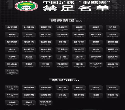 今年1月29日,足協(xié)又公布了第2批涉案人員的處罰,76人被罰,陳戌源、杜兆才、李鐵、王小平、郝偉、張鷺、秦升等73人終身禁足。